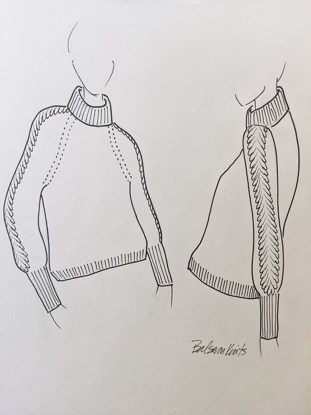 The Ptarmigan sweater, sketch and reality. Images courtesy Laura Twiss.